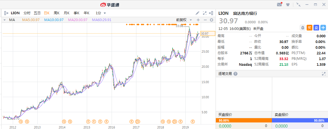 排名第二的是fidelity southern(富达南方银行),涨幅同样超过250倍,公司全资控股富达银行和LionMark保险公司,主要为大城市商业零售客户提供金融产品和金融服务。