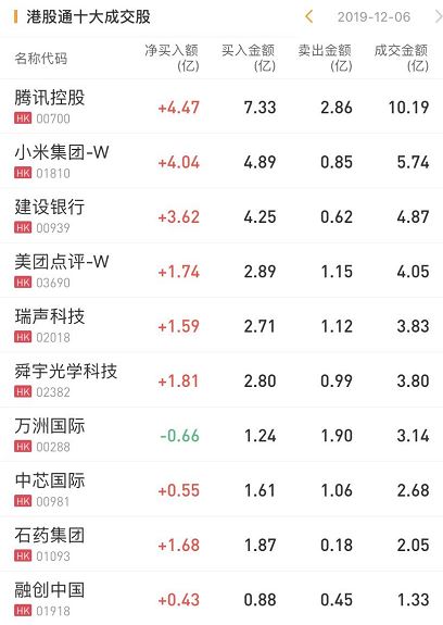 港股通资金今日净流入港股28.06亿港元。今日净买入腾讯4.47亿港元,小米4.04亿港元,建行3.62亿港元,美团点评1.74亿港元。