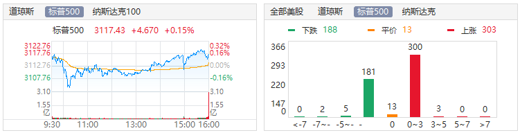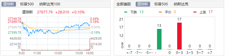 周四,道指上涨28.01点,报27677.79点,涨幅为0.10%;标普500指数上涨4.67点,报3117.43点,涨幅为0.15%;纳指上涨4.03点,报8570.70点,涨幅为0.05%。