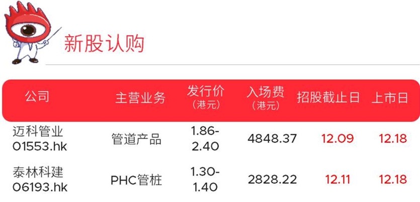 当前2只新股可认购,迈科管业在中国标准预制管道接头行业排行第一,占据7.1%的市场份额,总收益以钢管产品为主,截止发稿认购未足额。