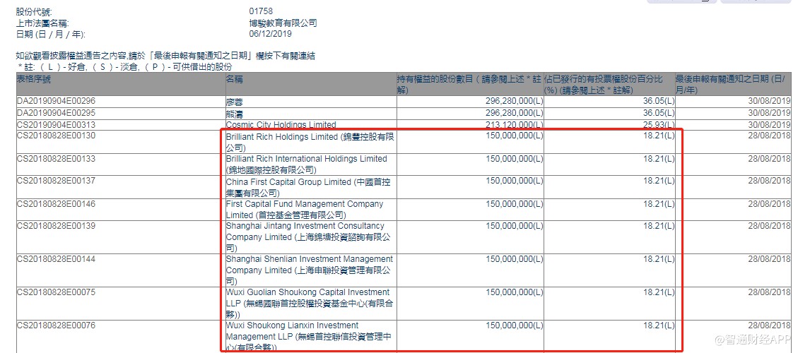 首控基金旗下的无锡国联首控股权投资基金中心则在上市之前提前布局博骏教育,占股25%。目前,无锡国联首控股权占比18.75%,为博骏教育第二大股东。
