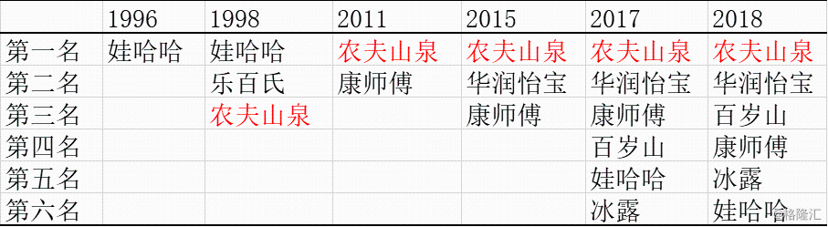 注:瓶装水市场份额排名情况,据尼尔森数据整理