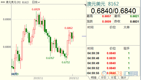 澳元本周初始受中国乐观数据助力,上涨近0.9%,但之后被本国数据拖后腿,终盘仅收高1.14%于0.6840。澳洲9月当季GDP成长0.4%,低于预估增幅0.5%,也不及前一季修正后的成长0.6,难以支持澳洲联储所说经济已达转折点的观点。疲弱的10月零售销售数据也表明第四季经济开局不妙。