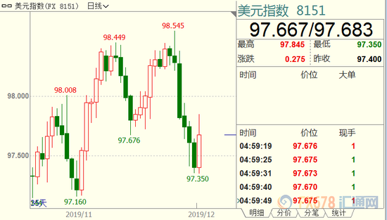 加之美国数据总体不尽人意,制造业活动连续第四个月萎缩、建筑支出下降、民间就业和服务业活动数据表现低迷,美元指数盘中创四周新低至97.350。不过最新非农就业数据表现靓丽,帮助其挽回部分颓势,终盘收跌0.61%至97.675。
