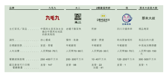 目前九毛九集团在中国共运营269家餐厅,同时管理41家加盟餐厅,从门店数量上看,已经和西贝莜面村以及外婆家相差不多,均在300家店以上。但是九毛九集团计划继续扩展公司的餐厅网络,此次赴港上市的主要目的就是扩大市场份额,公司计划2019至2020年,还要开设240间太二和54间九毛九,主要集中在一线和新一线城市,而其他品牌大约为76间。