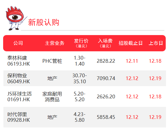当前有4只新股正在认购中,年内最大的物业股保利物业,还有二进宫的JS环球生活,第一次被坑了融资费的朋友们,”报仇“的时候到了,二进宫行情可参考”前车之鉴“百威亚太。