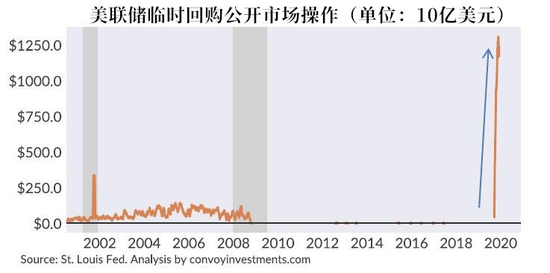 在9月回购市场出现流动性紧缺以来,美联储一直在以每月1.2万亿美元的速度进行公开市场回购操作,且已四次延长回购操作。