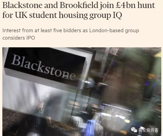 《金融时报》:黑石和Brookfield出价40亿英镑竞价英国学生公寓集团IQ