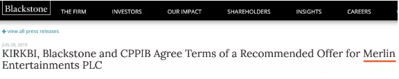 2019年6月28日,美国黑石联手丹麦乐高家族、加拿大养老金CPPIB,斥资60亿英镑(约531亿人民币),买下了英国最大的休闲娱乐公司默林娱乐集团(Merlin)。