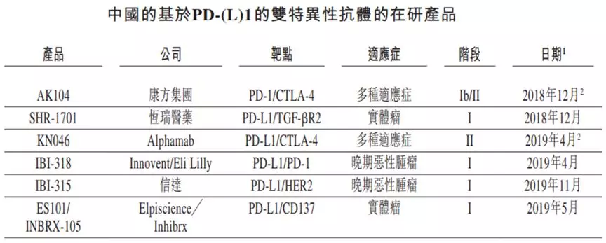 国内同样在研发基于PD-(L)1的双特异性抗体的企业有恒瑞医药、康宁杰瑞、信达生物和科望生物。其中,康方集团和康宁杰瑞的研发进度相对较快,开始进入II期临床试验。