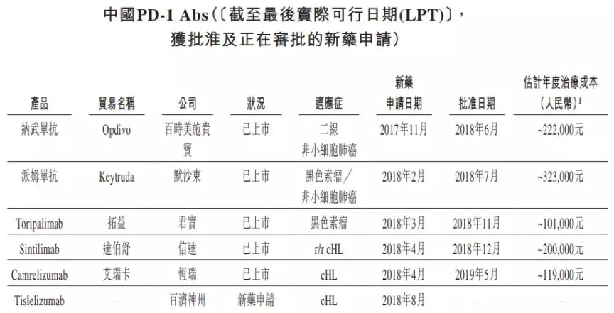 康方生物科技指出,截至最后实际可行日期,中国已有5种PD-1抗体疗法获批上市,产品分别来自百时美施贵宝、默沙东、君实、信达和恒瑞。同时,百济神州有一款PD-1抗体新药申请正在审批,此外还有77种PD-1抗体正在III期临床试验阶段。