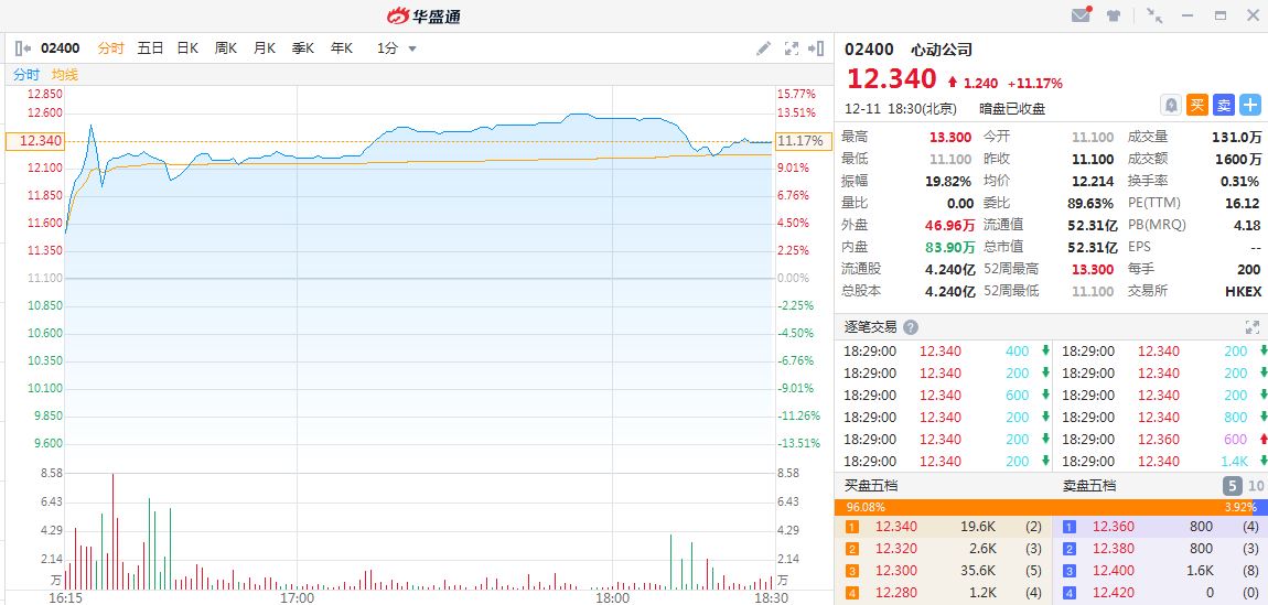 另一只新股心动公司暗盘收涨11.17%,成交1600万港元,最新总市值52.31亿港元。