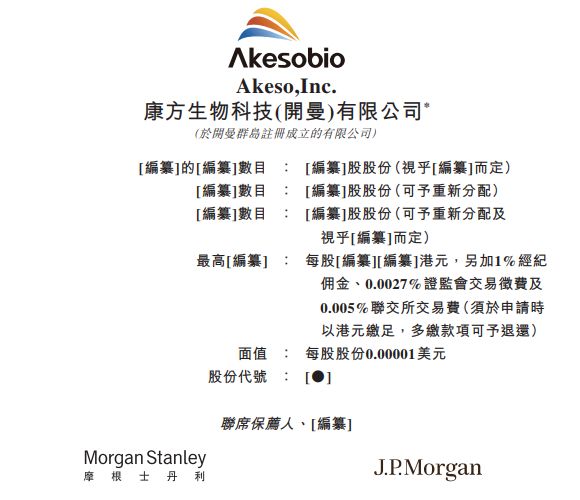 2019年12月3日,康方生物科技(开曼)有限公司向港交所递交上市申请,摩根士丹利和摩根大通为其联席保荐人。
