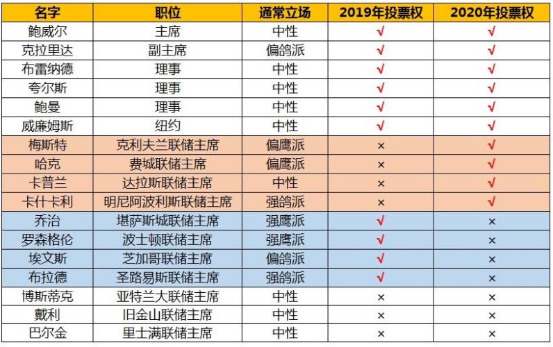 美联储官员投票权变化及通常的立场倾向,数据来源:Wind