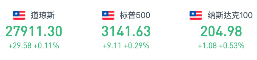 周三,美股小幅低开,道指盘初走低,美联储维持利率不变,符合市场预期,道指随后小幅上涨。截至收盘,道琼斯指数涨0.11%,报27911.09点;标普500指数涨0.29%,报3141.62点;纳斯达克指数涨0.44%,报8654.05点。