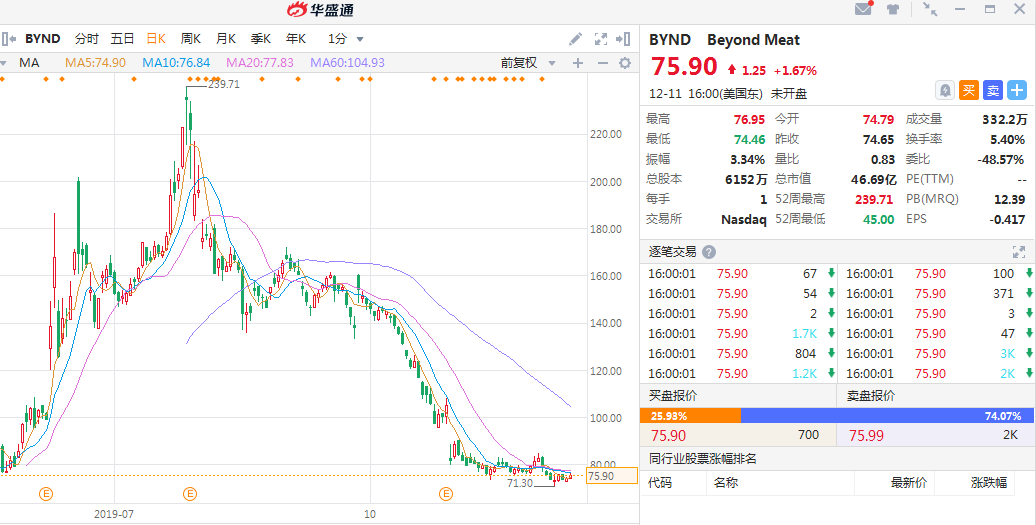 然而,幸福来得太突然,也走得非常突然。短短三个月内,Beyond Meat股价大跌,从上涨163%到下跌35%,实在是云泥之别。
