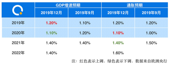 为此,欧央行下调了GDP增速预期,预计2020年GDP增速为1.1%,低于9月预期的1.2%。