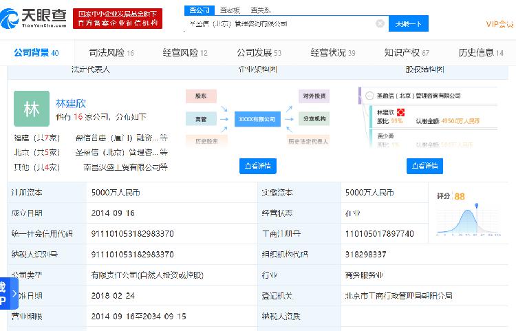天眼查信息显示,圣盈信金服集团成立于2014年9月,致力于以互联网大数据平台为基础,利用人工智能技术搭建一个提供投融资、生产经营及资本运营等专业咨询服务的综合平台。公司于2017年8月8日上市。公司经营范围包括企业管理咨询;企业策划;经济贸易咨询;承办展览展示活动;教育咨询(不含出国留学咨询及中介服务);财务咨询(不得开展审计、验资、查账、评估、会计咨询、代理记账等需经专项审批的业务,不得出具相应的审计报告、验资报告、查账报告、评估报告等文字材料);翻译服务等。