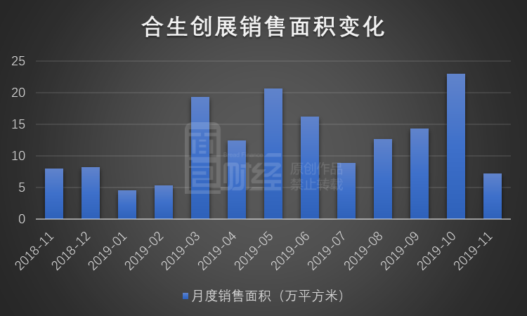 1-11月份,合生创展累计销售面积为144.64万平方米,较上年同期增加23.15万平方米,同比增加19.06%。