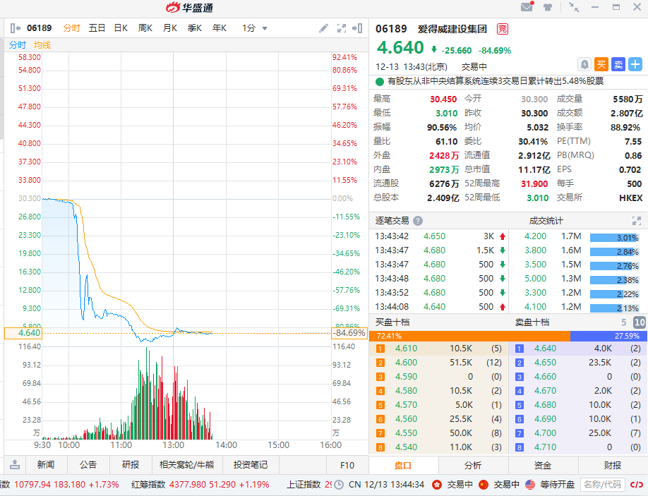 爱得威建设集团自今年7月中旬从不到8港元启动上涨行情,昨日盘中创出历史新高31.9港元,5个月期间一度累涨超300%。