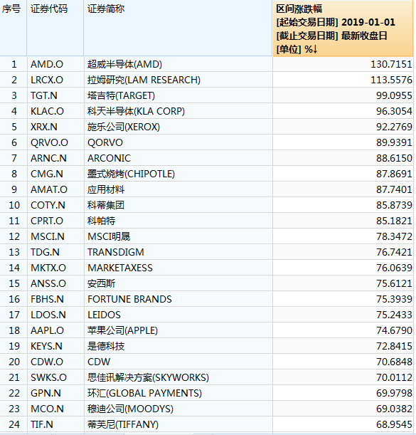 标普500涨幅榜,AMD夺冠