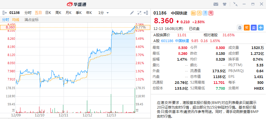 国家积极推进一带一路项目,再加上多个地区新发展。包括京津冀协同、长江经济带、雄安新区及粤港澳大湾区等。同时继续城镇化、鄕村改革、中西部交通设施改进、铁路、公路、城轨、机场、市政及水利等皆能保持稳定的增长。可于现价8.36元附近买入,中长线可见11.70元,跌穿7.10元止蚀。
