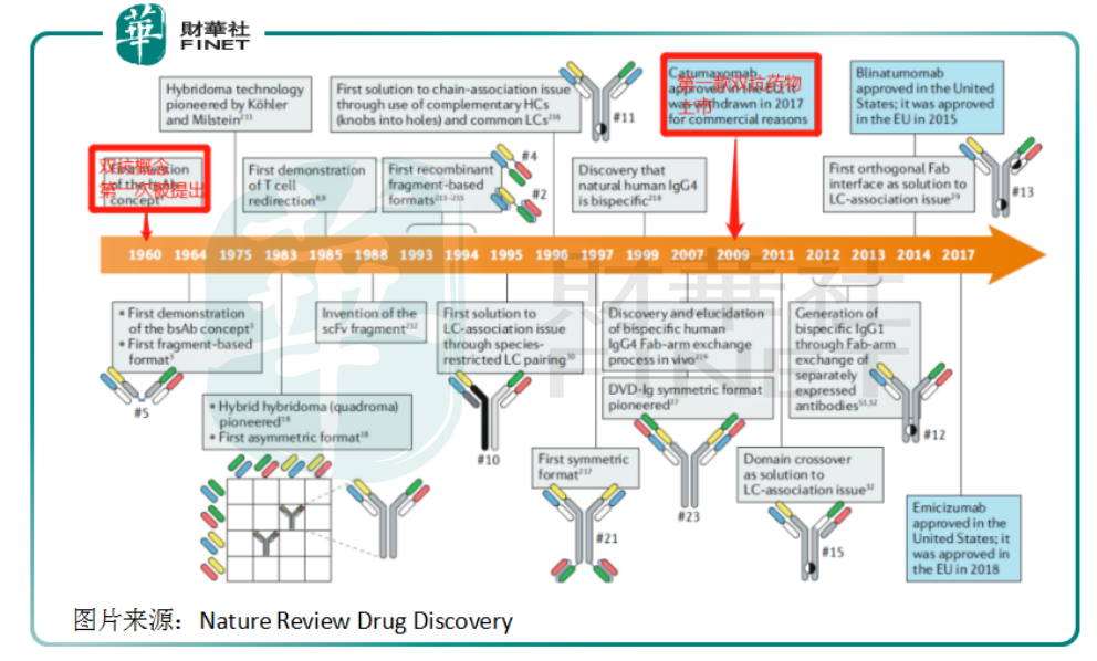 从第1个在欧洲获批上市的catumaxomab和第1个在美国获批上市的blinatumomab问世以来,全球范围内关于双特异性抗体(bispecific antibody,简称“双抗”)的临床研发仅有短短20年历史。但实际上,关于双抗同时靶向2个不同表位的概念起源于20世纪80年代。