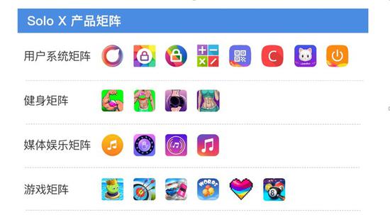 赤子城科技C端业务为Solo X产品矩阵,包含用户系统、健身、媒体娱乐、游戏四大子矩阵,涵盖启动器、安全、防病毒、音乐、娱乐、健身、休闲游戏等多个品类,覆盖了用户移动互联网生活的各个场景。