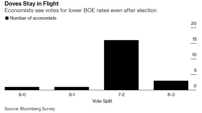 英国首相鲍里斯·约翰逊(Boris Johnson)在大选中取得的决定性胜利,似乎不太可能改变英国央行鸽派委员的政策倾向,多数分析师预计迈克尔·桑德斯(Michael Saunders)和乔纳森·哈斯克尔(Jonathan Haskel)本周将再次呼吁降低利率。