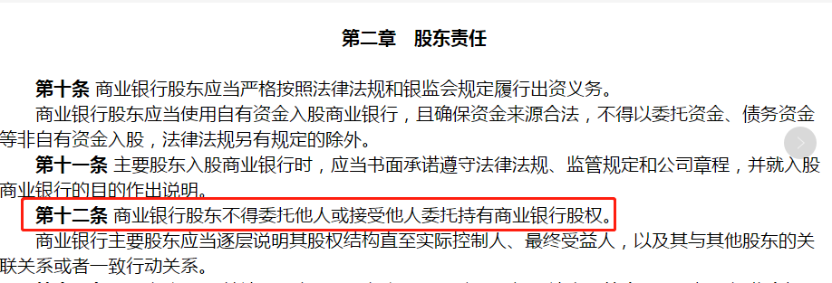 据商业银行股权管理相关办法,商业银行股东不得委托他人或接受他人委托持有商业银行股权。