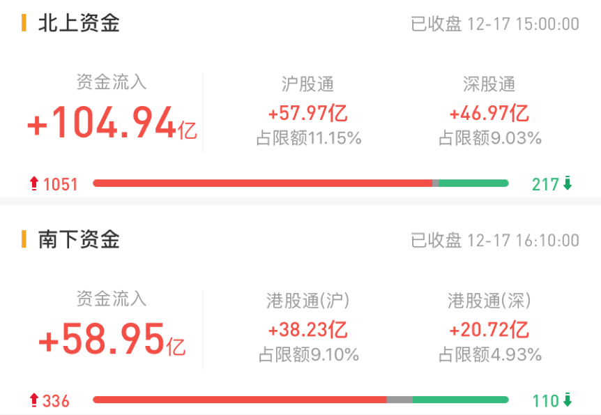 北上资金今日净流入104.94亿元,沪股通净买入贵州茅台0.32亿元,净买入中国平安1.23亿元,净买入招商银行0.61亿元。