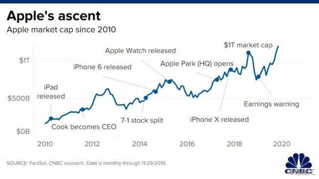 2018年,苹果成为第一家市值突破1万亿美元的上市公司。库克在一份纪念这一时刻的备忘录中告诉苹果员工:“财务回报只是苹果创新的结果,把我们的产品和客户放在第一位,并始终忠于我们的价值观。”