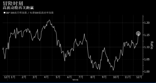 风险偏好上升的另一个迹象是,高贝塔系数的波动型股票相对于稳定型股票也在卷土重来,本月达到了5月以来的最高水平。