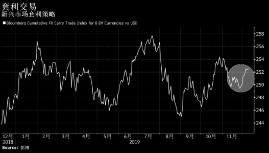由于依赖出口而成为全球贸易紧张局势受害者的新兴市场也开始受益。瑞银财富管理和贝莱德本周都对该资产类别表示乐观。全球首席投资官Mark Haefele在报告中写道,由于市场情绪改善,瑞银财富管理在采取套利策略,也就是借入低收益资产来购买高收益资产。