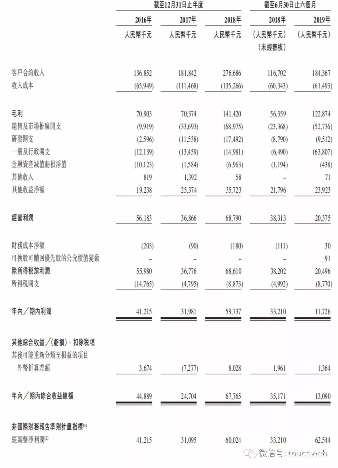 赤子城的毛利率及经调整净利率亦稳步增长,由2018年的51.1%、21.7%,提升至2019年上半年的66.6%、33.9%。