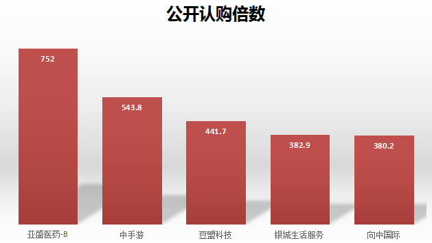 2019年超购倍数靠前的公司还有中手游、豆萌科技、银城生活服务以及向中国际,超购倍数都在380倍以上。