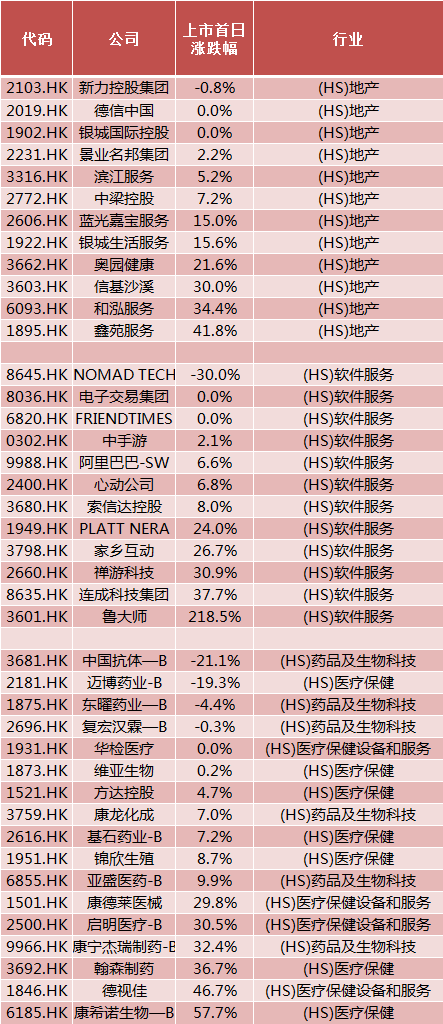如果按照首日收盘涨幅来排序,那么在2019年新股中的涨幅之王当属软件股鲁大师了,首日收盘涨幅高达218%,一天翻两倍!