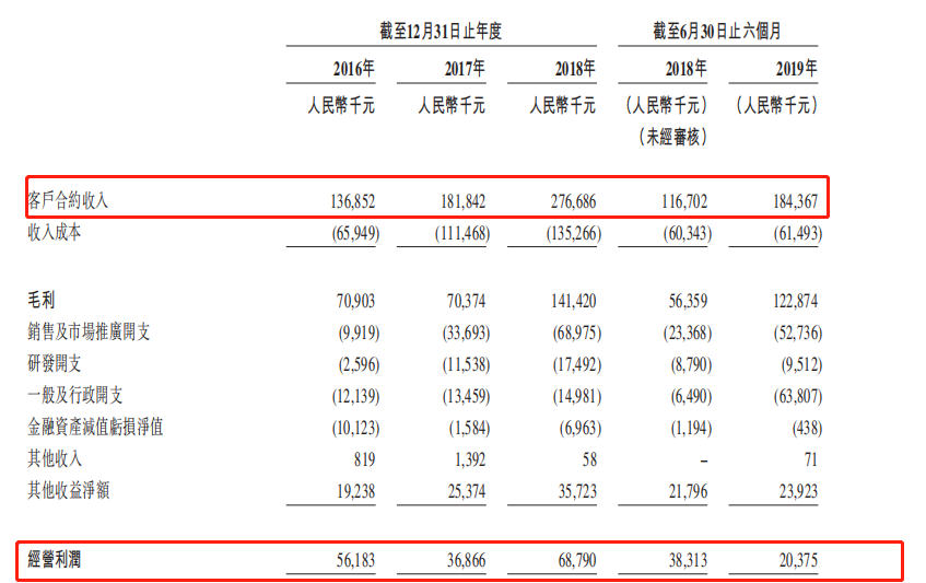 赤子城2016年、2017年、2018年和2019年上半年的营收分别为1.4亿元、1.8亿元、2.8亿元、1.8亿元。三年复合增长达到42.2%,2019年上半年同比增长58.0。在盈利能力上,2019年上半年,赤子城经调整后净利润同比增加88.3%。赤子城在营收与净利润上也保持迅速增长。
