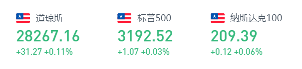 受上周积极消息可能对股市带来长期推动作用影响,周二美股三大股指再创收市新高,录得五连涨。截至收盘,道指涨0.11%,报28267.16点,标普500指数涨0.03%,报3192.52点; 纳指涨0.1%,报8823.36点。