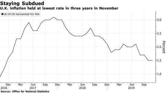 周二公布的数据显示,英国11月通胀维持在三年低位,低于英国央行的目标,在英国央行决议之际,数据不太可能改变两名英国央行委员将投票支持降息的预期,即使政治不确定性已经减少。数据公布后,英镑无明显波动。