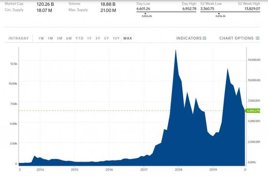 2017年12月,比特币达到了近2万美元的峰值--然而这对PC游戏玩家来说却是个糟糕的时刻,因为随着越来越多的投身到挖矿中,显卡的价格不断上涨,他们能用的显卡性能不断下降。不过之后一年的时间里比特币的价格跌到了3200美元。去年比特币价格有所回升--它的飙升一度推动了AMD股价的上涨--尽管较之最高的时候略有下跌,但目前的价值仍约有6600美元。