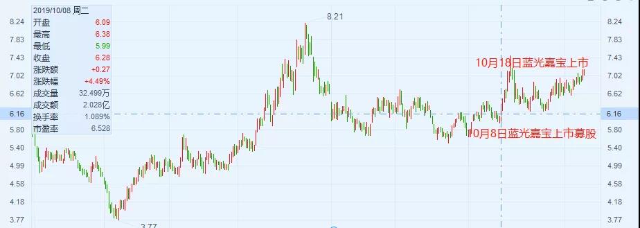 如果A股的地产上市公司分拆物业到港股上市,除了直接申购外,投资者可以提前埋伏获利,如a股蓝光发展10月8日收盘价为6.28元,当天涨幅4%+,至10月18日蓝光嘉宝上市日时其开盘股已升至7.12元。