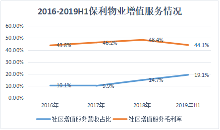 但从招股书也可以看到,保利物业也在逐年加大增值服务占比。2016至2018年,以及2019年上半年,社区增值服务的营收占总收入比例分别为10.1%、9.9%、14.7%、19.1%。