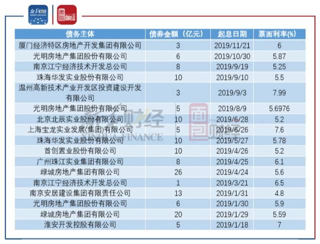 具体到房地产行业,截至2019年12月15日,隶属于申万二级行业分类的房地产开发企业的永续债发行余额超过800亿元。下表为房地产开发企业2019年人民币永续债发行情况,合计金额149亿元: