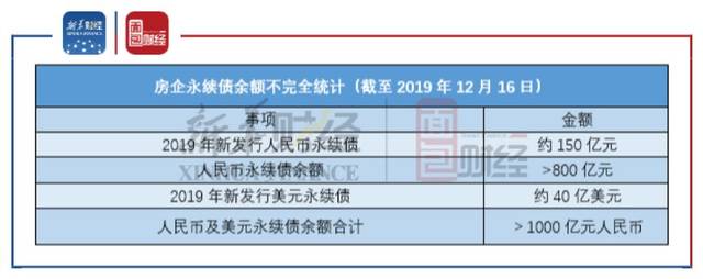 新华财经和面包财经研究员对公开数据的梳理显示,房企发行的永续债余额已经突破千亿元关口。其中,2019年截至12月16日的人民币永续债、美元永续债发行金额分别达到约150亿元人民币和40亿美元。