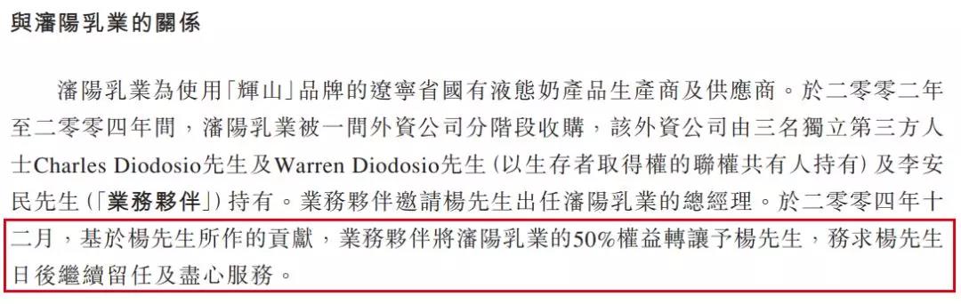 根据招股书所解释,这是外资“基于杨先生对沈阳乳业及所有其他合营公司所作贡献”所做出的激励........