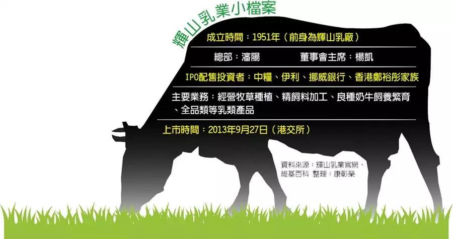 2013年9月,辉山实现了港股上市,筹集最多达100亿港元,跻身有史以来全球消费品公司首次发行前十名,上市首日市值近400亿港元。