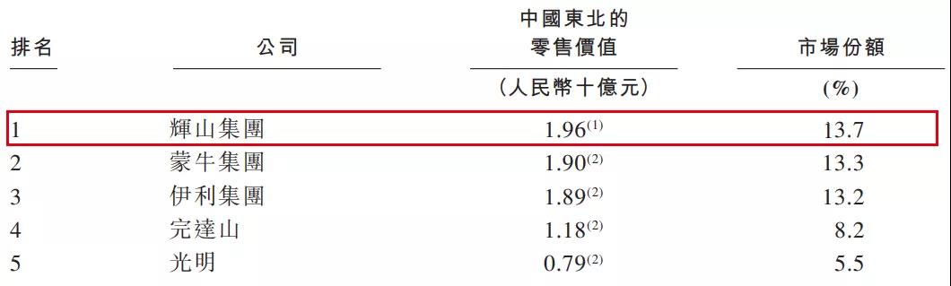 根据当年招股书介绍,辉山拥有国内最大的上游资源及第二大的奶牛群,而以零售额计算,辉山的液态奶产品占中国东北最大市场份额,市占率为13.7%。