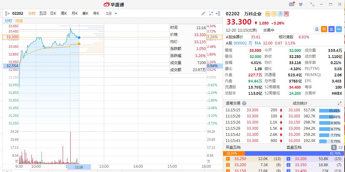 新浪港股讯 12月20日消息,钜盛华和前海人寿合计减持万科5%股权,股权减持压力解除,万科引领内房股走高。其中,万科企业涨3.57%,宝龙地产涨3.19%,融创涨2.98%,旭辉控股、时代中国、华润置地等涨逾2%。