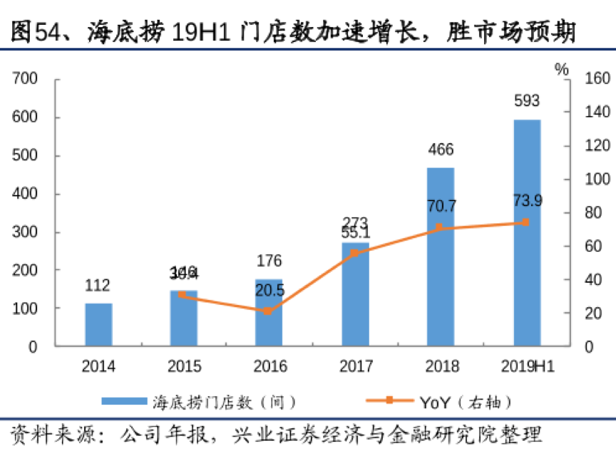 此外,当时海底捞估值水平较低还有一个重要原因,那就是市场对海底捞未来业绩增长的确定性存疑。彼时,市场上普遍流传的观点是认为海底捞在下沉至二、三线城市时会遇到问题,而且店面的快速扩张可能会导致单店数据下滑。上面的几个原因共同导致了彼时的海底捞在低位徘徊,无人问津。